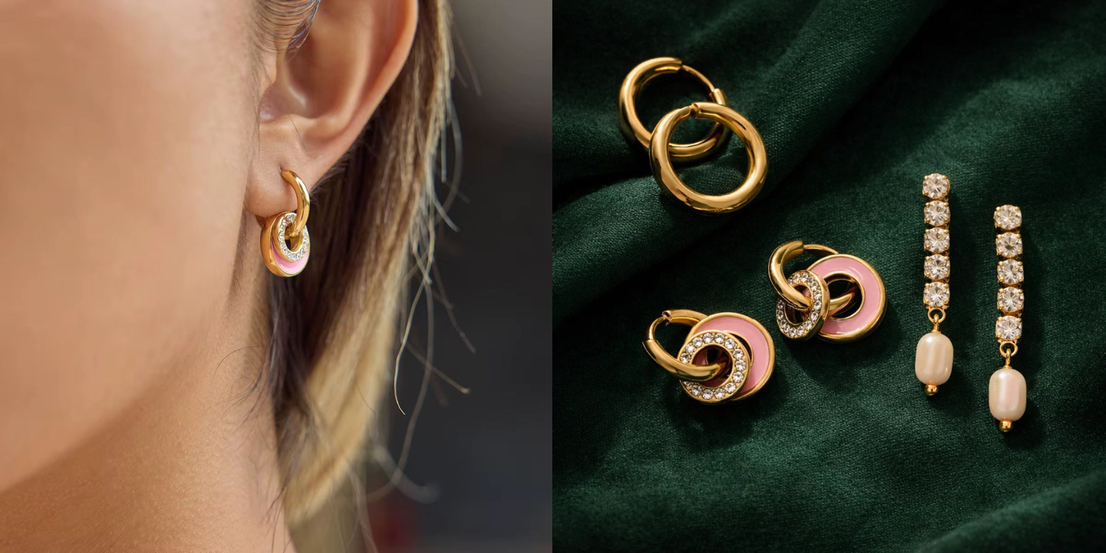Pink Enamel Chunky Hoops with Gold Accents